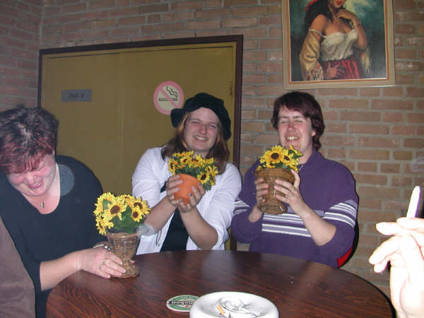 Op zaterdagavond naar de Hollandse Avond in Okkenbroek. Geef drie dames een bloempotje en je hebt er heel de avond geen kind meer aan :-) Volgend jaar meedoen, dames!